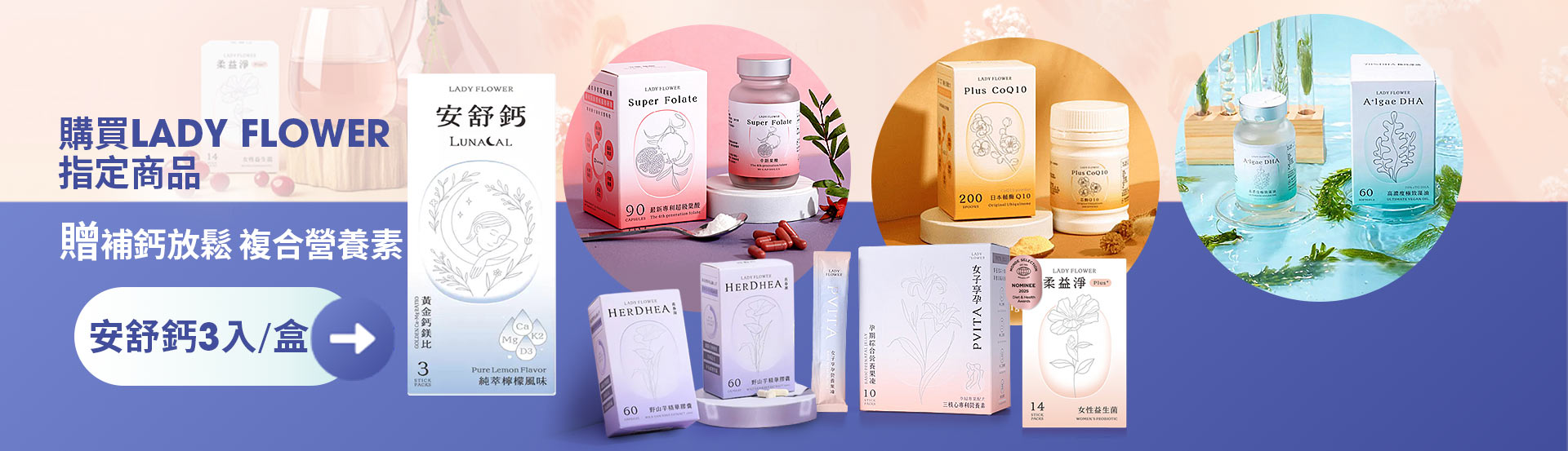購買LADY FLOWER指定商品 贈補鈣放鬆 複合營養素【安舒鈣3入/盒】